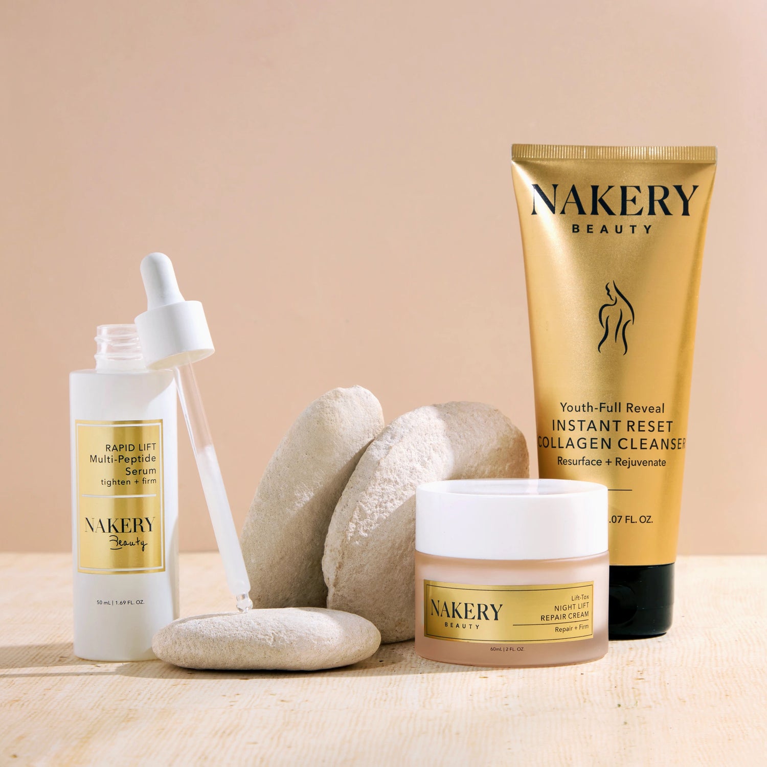 Give your skin the ultimate lift and rejuvenation with this powerful three-step routine designed to cleanse, tighten, and repair for a visibly firmer, smoother, and more youthful complexion.