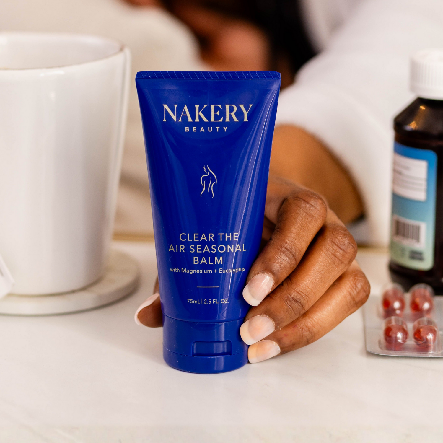 Because seasonal congestion doesn’t just affect your breathing — it affects your skin, your sleep, and your mood. We created Clear The Air Seasonal Balm as a clean, effective alternative to petroleum-heavy vapor rubs. Our formula not only helps you supports a sensation of clear, balanced breathing but also protects, nourishes, and repairs your skin while easing tension and stress. It’s relief for your body and balance for your skin.