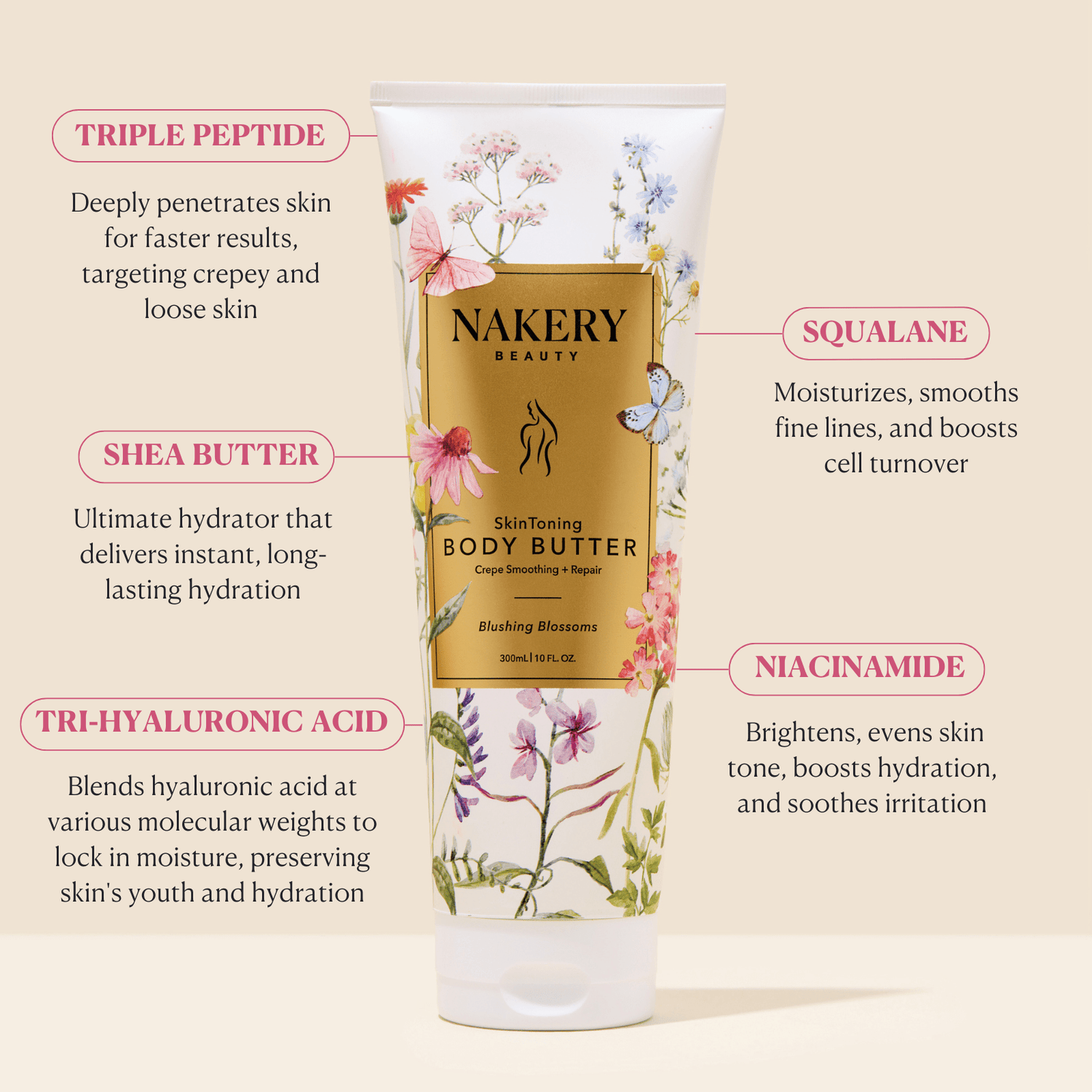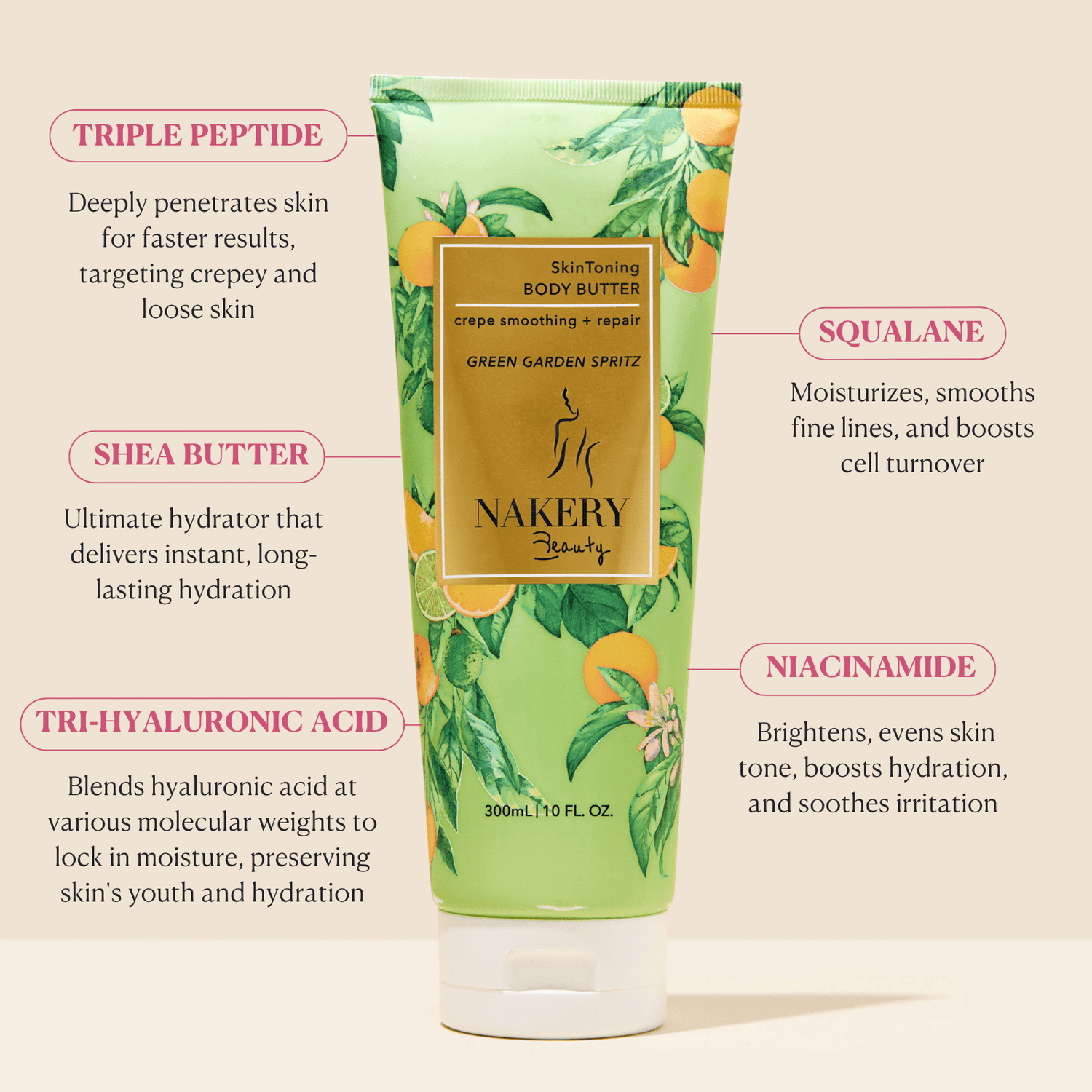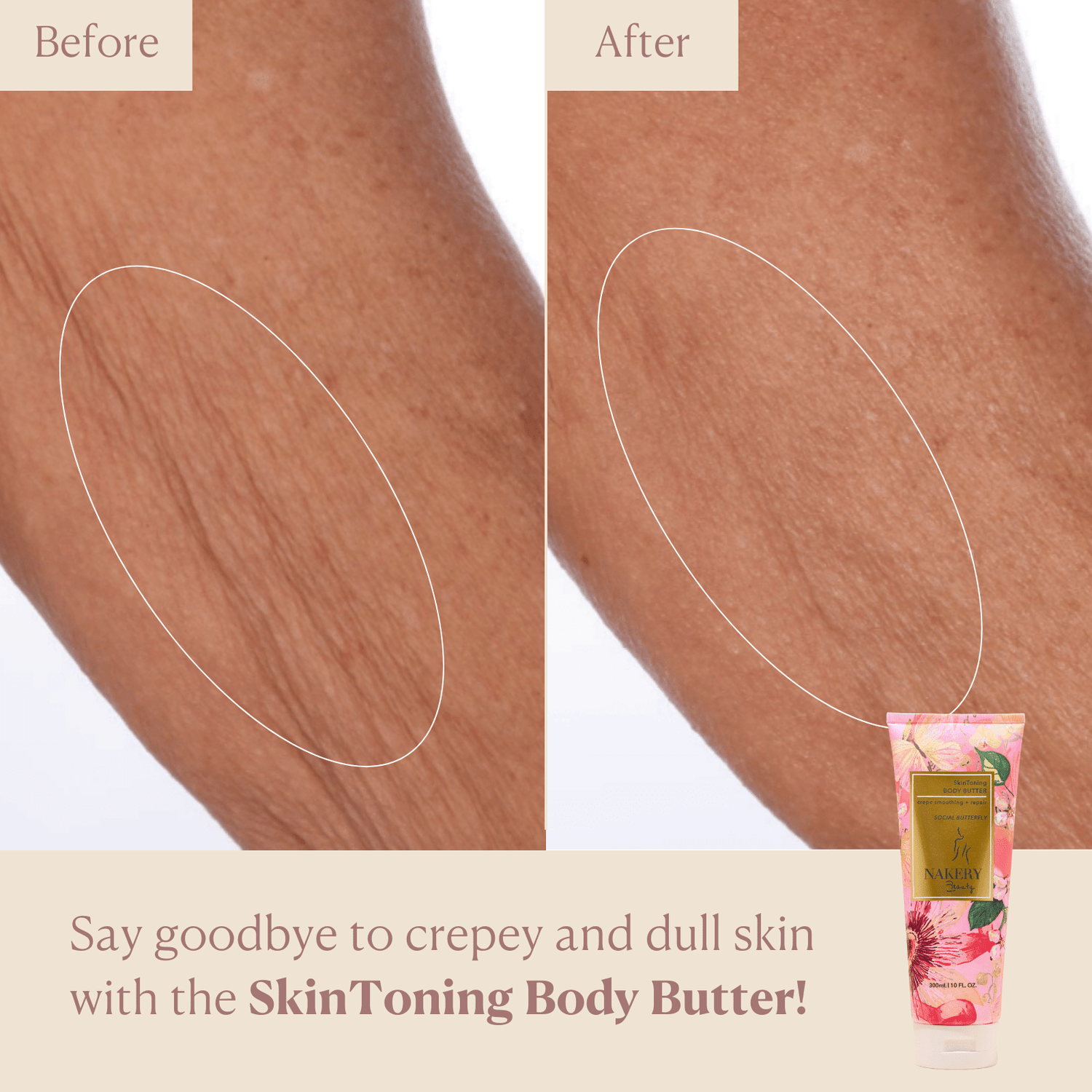This body butter is designed to repair crepey skin, target loose and sagging skin, and provide overall toning and hydration for the body.