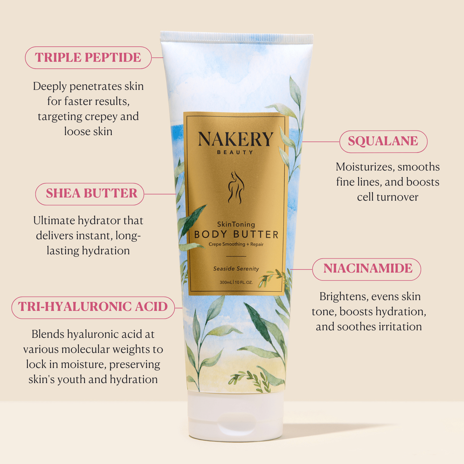 Smooth on daily, morning or night, for moisturizing and smoothing benefits all over the body. For best results, use after Nakery Beauty SkinRestore Body + Hand Wash (sold separately).