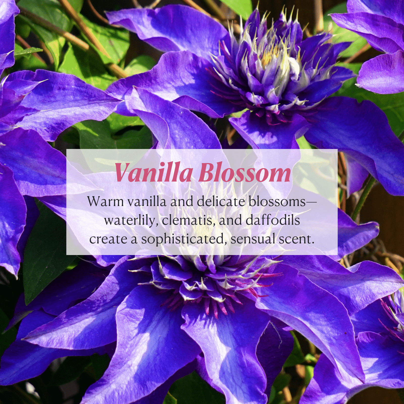 You can refer to our “scent notes” tab for a full breakdown of our luxurious scent collection and pick your favorite!